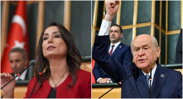 DEM Parti Eş Genel Başkanı Tülay Hatimoğulları partisinin grup toplantısında MHP Genel Başkanı Devlet Bahçeli’nin çağrısına destek verdi: “Fiziki olarak gelsin konuşsun diyoruz. Ne diyeceğini hep birlikte görelim dedik geçen hafta, bu hafta aynı sözü tekrarlıyoruz. Bırakın tecrit kalksın, sayın Öcalan çıksın, ne konuştuğunu hep birlikte görelim.“