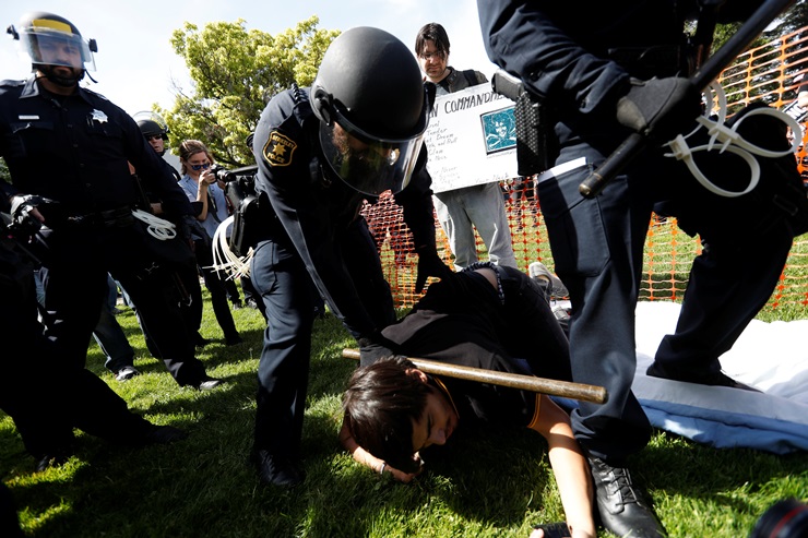 Demonstrators for and against U.S. President Donald Trump rally in Berkeley, California