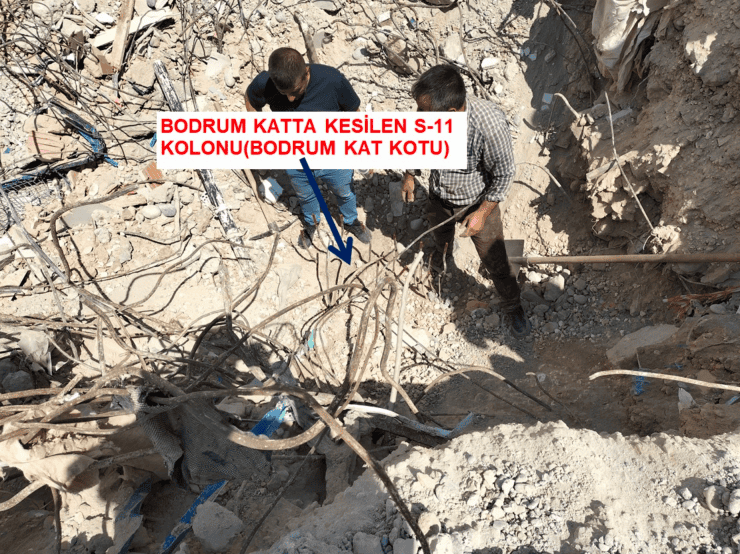 “Heyetimizce yıkılan binanın yıkılmasının sebebinin, binanın Akpek Sokak’a bakan cephesi bir iç aksta yer alan ortadaki S-11 kolonunun bodrum katta kesilmiş olması olarak düşünülmekte olup, S-11 kolonu merkezi bir kolon olması hesabı ile özellikle bodrum katta kesilmesinin binanın yıkımına neden olduğu heyetimizce kanaat edilmiştir.