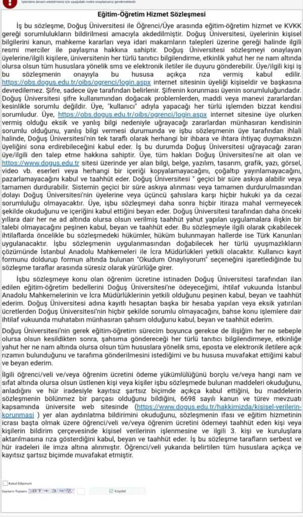 Yönetim, bu sözleşmeyi, emrivaki şekilde öğrencilerin ders seçmek için kullandığı ‘öğrenci bilgi sisteminin’ girişine koydu. Sözleşmeyi imzalamayan sisteme giremiyor. Öğrenciler, bu şekilde yönetimin “Sözleşmeyi kabul etmeme şansın yok” dendiğini söyledi.