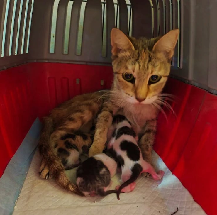 Al Ain’de bir kişi kapısının önündeki bir kedi taşıma kapında bir kedi ve dört yavru buldu. Notta şöyle yazıyordu: