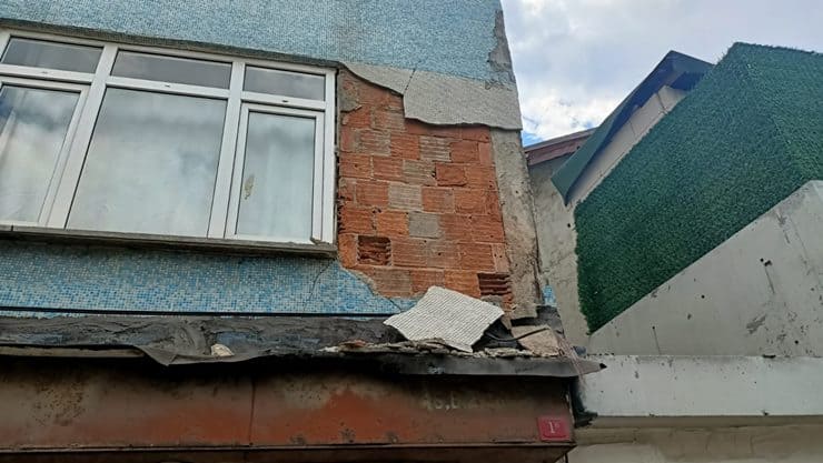 Ayvansaray Mahallesi’ndeki Sulu Sokak’ta bulunan 50 senelik Saray Apartmanı’nın sıvalarının döküldüğü görüldü.