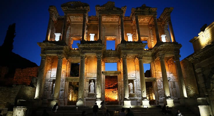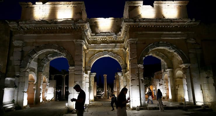 Her yıl yüz binlerce ziyaretçi ağırlayan 2 bin 300 yıllık Efes Antik Kenti, Kültür ve Turizm Bakanlığının ‘Gece müzeciliği’ uygulamasıyla 9 Nisan’dan itibaren gün batımından sonra da ziyaret edilebiliyor.