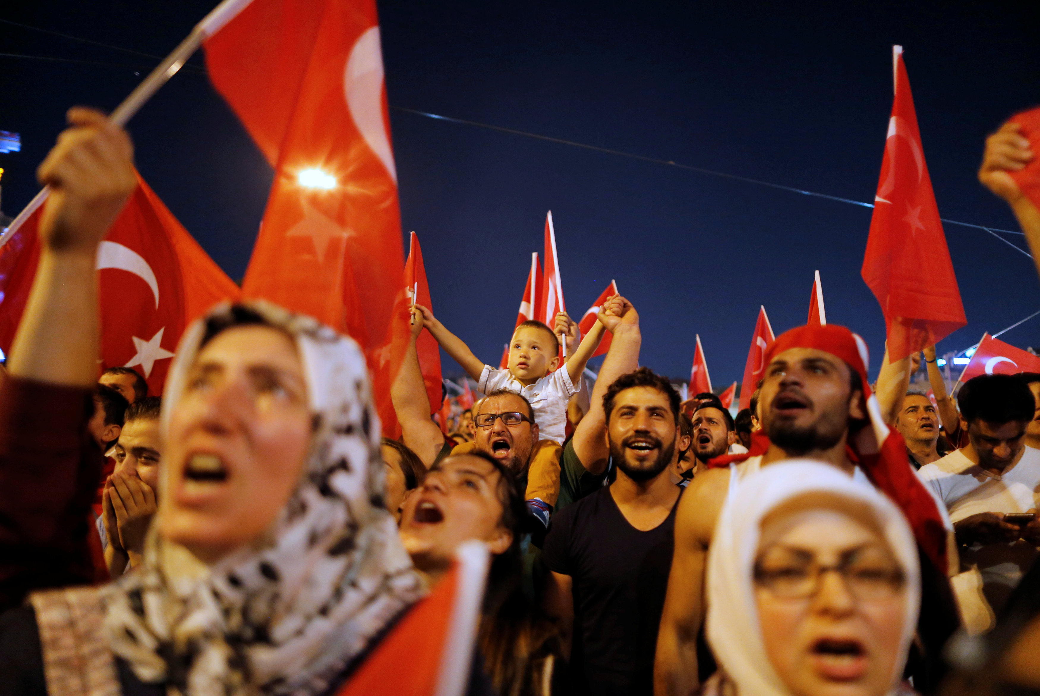 Supporters of Turkish President Tayyip Erdogan gather at Taksim Square in central Istanbul, Turkey