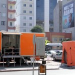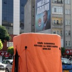 Cumhuriyet Meydanı’nda halka hitap edecek rdoğan için Kimyasal, Biyolojik, Radyoaktif ve Nükleer (KBRN) saldırıya karşı önlem çadırı kuruldu.