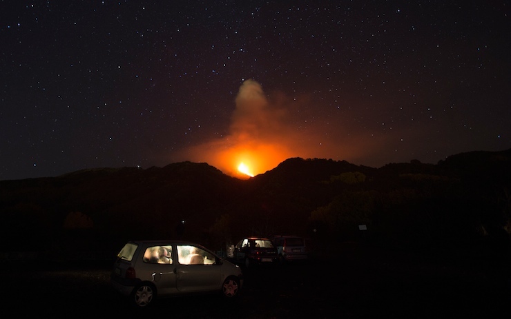 Italy's Mount Etna, Europe's tallest and most active volcano, spews lava as it erupts on the southern island of Sicily