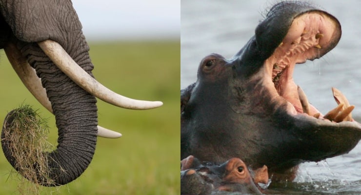 Daha ucuz ve elde edilmesi daha kolay olan su aygırı dişleri de tıpkı fil dişleri gibi dekoratif oymalar için sıklıkla kullanılıyor.