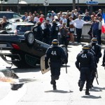 Havaalanları ve tren istasyonlarına giden yolları araç trafiğine kapatan taksi şöförlerine, ana arterlerde uzun araç kuyrukları oluşmasına neden olan eylemi sonlandırma çağrısı yapan polis, bazı noktalarda şöförlere biber gazıyla saldırdı.