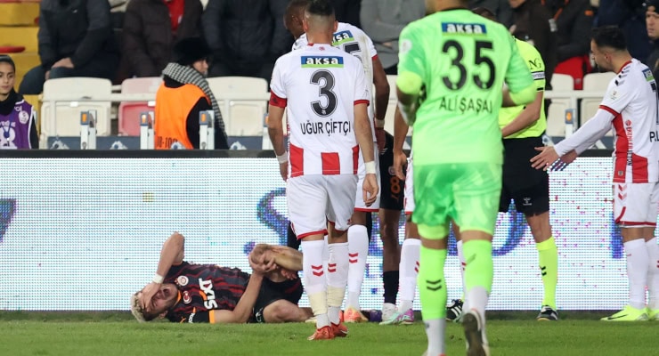 Sivasspor – Galatasaray maçı, Barış Alper’in sakatlandığı pozisyon sonrası. Fotoğraf: AA