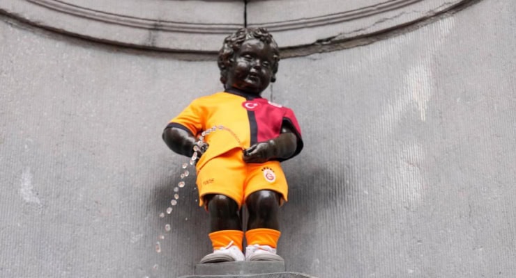 Galatasaray’ın beş yıldızlı özel forması, Belçika’nın başkenti Brüksel’in simgelerinden Manneken Pis heykeline giydirildi.