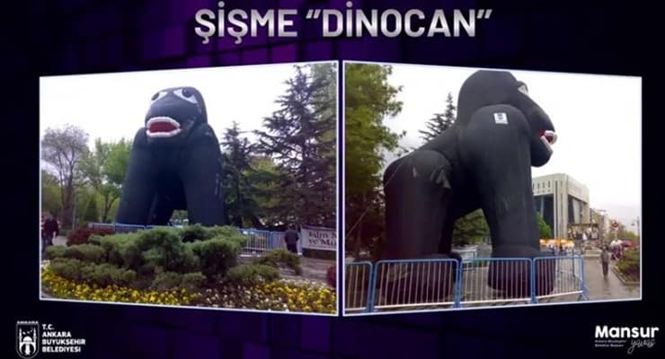 Yavaş, şu anki yönetime ‘heykel belediyeciliği’ eleştirileri yöneltenlerin ‘kentin dört bir yanına heykel yaptığını’ ifade etti ve önceki dönemde yapılan bir projeye ithafen şunları söyledi: “Gökçek döneminde yapılan bu eserin adı ‘Şişme Dinocan’. Murat Bey bu yayını izliyorsunuz biliyorum. Bunun Ankara halkının tarihi ve kültürüyle ne alakası var.”