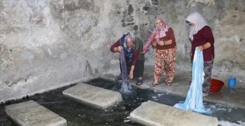 Göynücekliler çamaşırlarını Roma hamamında yıkıyor