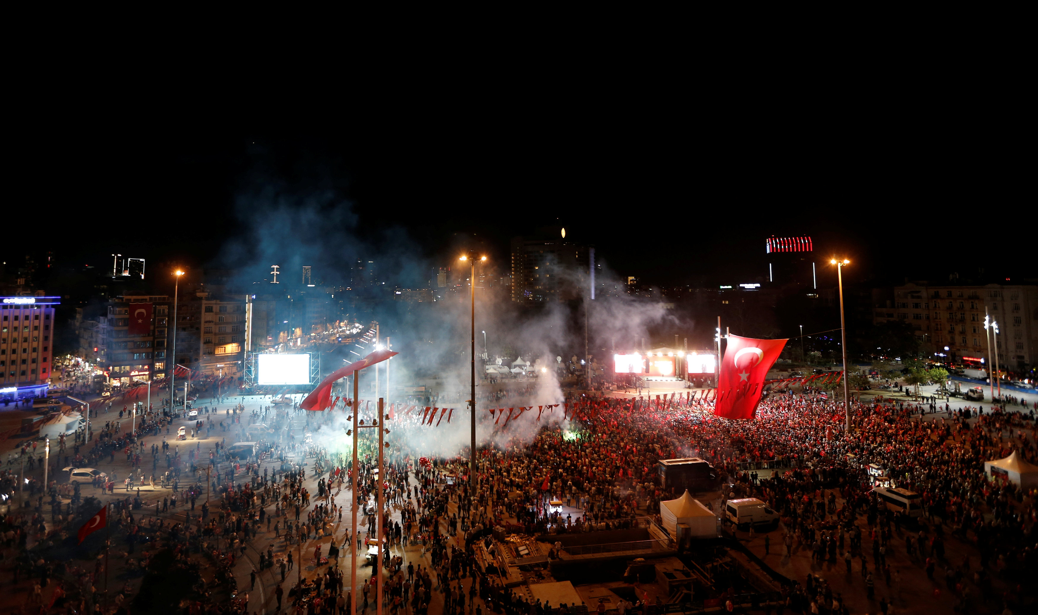 Supporters of Turkish President Tayyip Erdogan take part in a pro-government demonstration on Taksim square in Istanbul