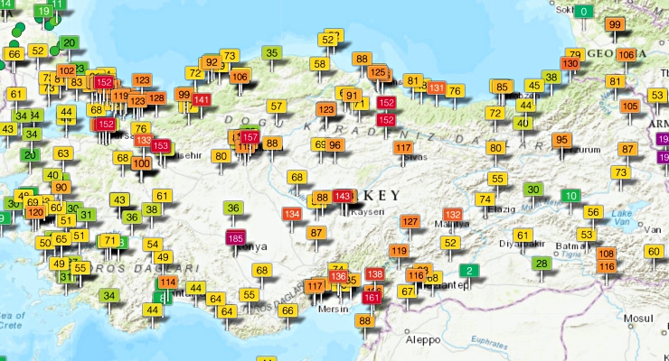 • Antalya: 114 (Hassas gruplar için sağlıksız)