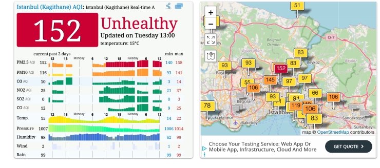 Türkiye’den İstanbul PM 2,5 çapında 152 puanla ‘sağlıksız’ kategoride yer aldı ve şöyle uyarıldı: