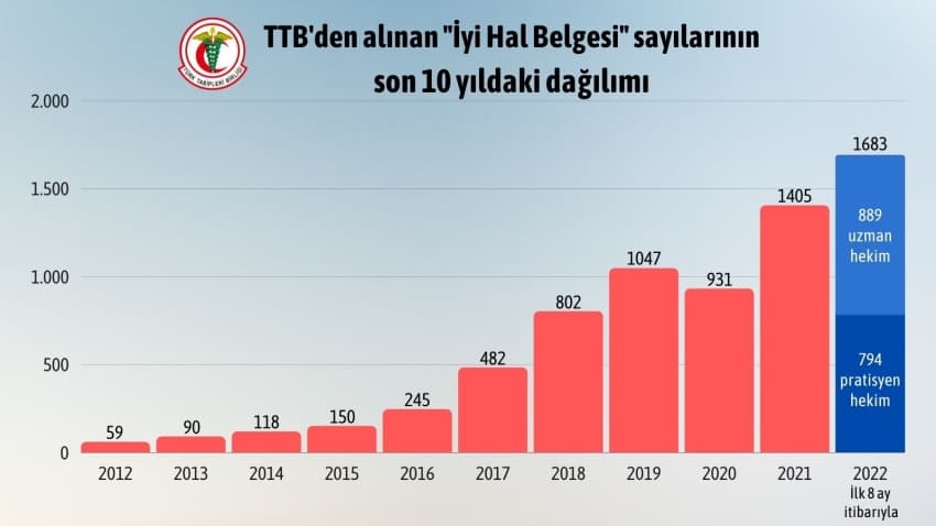 Türk Tabipleri Birliği (TTB), sağlık çalışanlarının yurt dışında çalışabilmesi için ‘iyi hal belgesi’ aylık başvuru sayısının ağustosta yeni bir rekorla 281 olduğunu açıkladı.