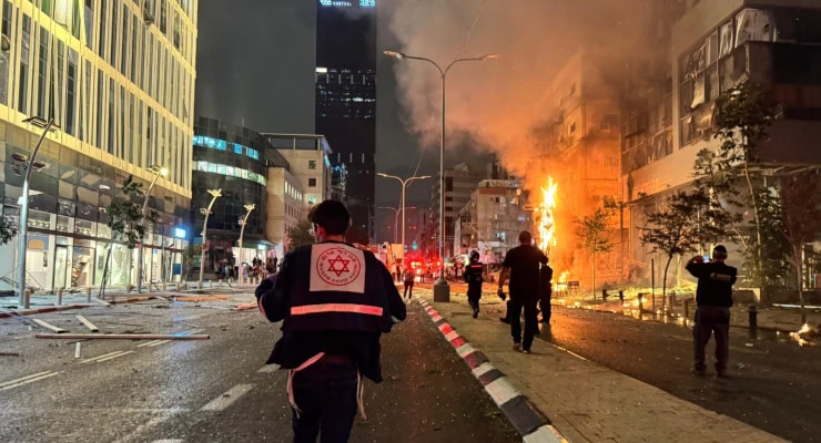 Tel Aviv’in Ramat Gan bölgesinde bir ticari kompleksin yakınına roket düştüğü ve bölgede yangın çıktığı belirtilmişti.