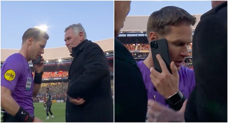 Hollanda’da oynanan AZ Alkmaar-NEC Nijmegen kupa finalinde (KNVB Beker) maçın hakemi sahadayken gelen telefona cevap verdi.