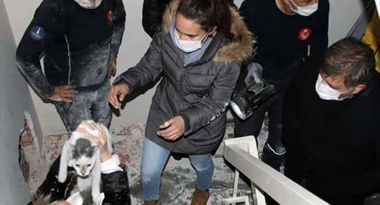 Karşıyaka Belediyesi Veteriner İşleri Müdürü Çağlayan İnanlı, kedinin 30 Ekim’deki depremden bu yana iki bina arasında yaşamasının imkansız olduğunu belirterek, “Muhtemelen deprem sonrasında sokakta yaşamıştır. Dört-beş gün önce evine dönmeye çalışırken iki bina arasına düştüğünü tahmin ediyoruz” ifadelerini kullandı.
