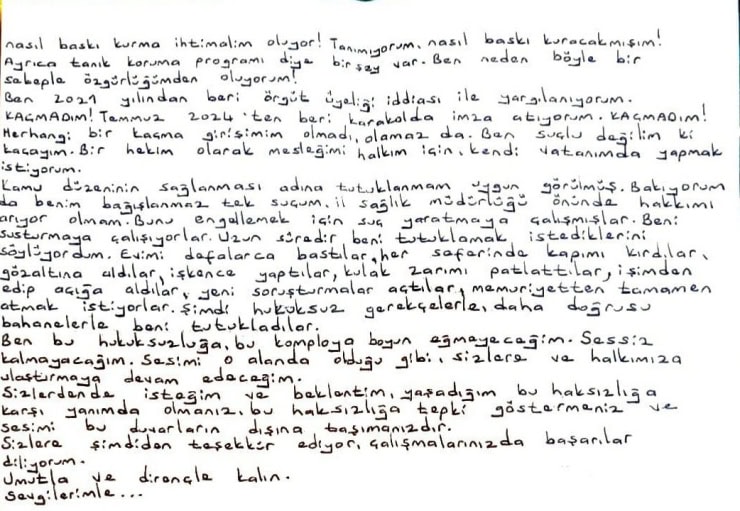 İl sağlık müdürlüğü önünde gözaltına alınıp tutuklanan doktordan mektup