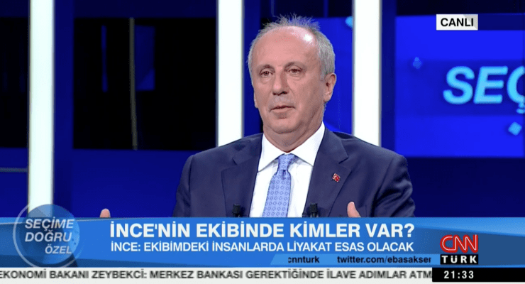 İnce, CNN Türk canlı yayınında Hürriyet Ankara Temsilcisi Hande Fırat, Vatan Ankara Temsilcisi Murat Çelik ve CNN Türk Ankara Temsilcisi Hakan Çelik’in sorularını yanıtladı.