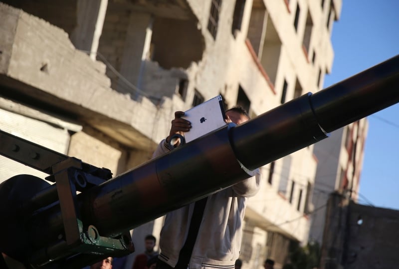 Eski gücünden uzak olsa da Suriye’de rejim kuvvetlerine karşı mücadelesini sürdüren Özgür Suriye Ordusu, teknolojiyi kullanmayı da ihmal etmiyor. El Ghouta’dan başkent Şam’ı bombalamaya hazırlanan militanlar, isabeti garantilemek için iPad kullanıyor.