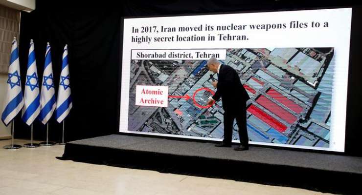 DW Türkçe’nin haberine göre, İran’ın taahhütlerine karşın gizli bir nükleer programı olduğuna ve nükleer başlıklı füzelerin menzilini genişletmeye çalıştığına dair ellerinde ‘yeni ve güçlü kanıtlar’ olduğunu ifade eden İsrail başbakanı, bir basın toplantısı düzenleyerek söz konusu fotoğraf ve görüntüleri kamuoyuna sundu.