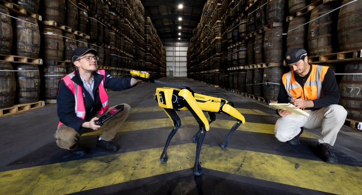 İskoçya’da Dewar’s’ın viski depolarındaki robot köpek sızıntı yapan fıçıları arıyor.