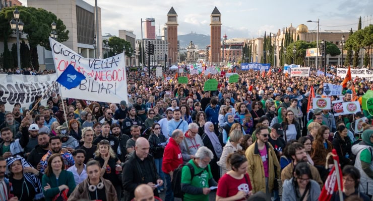 İspanya’nın Madrid ve Barcelona gibi büyük şehirlerinde sokaklara dökülen binlerce insan, konut krizini ve yüksek ev kiralarını protesto etti.
