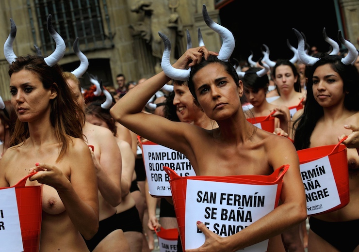 İspanya'da hayvan hakları savunucuları, boğa koşusu festivalini 'kanla' protesto etti