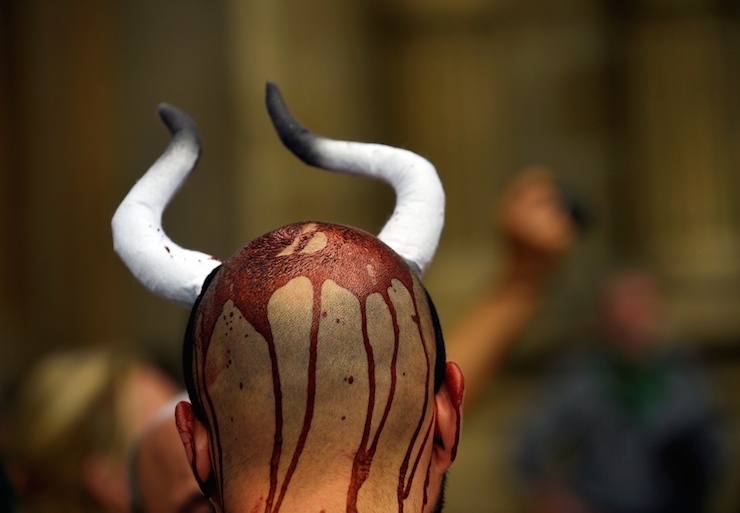 İspanya'da hayvan hakları savunucuları, boğa koşusu festivalini 'kanla' protesto etti