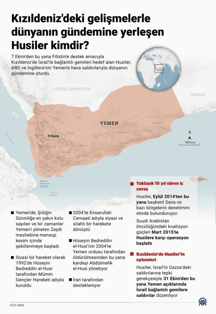 Al Jazeera’nın haberine göre Husiler, Gazze’de saldırı altındaki Filistinlilerle dayanışmak için İsrail’e saldırdığını söylüyor. Husiler, İsrail’in Gazze’de katliama başladığı 2023’ten bu yana İsrail’e yüzlerce füze fırlattı ve Kızıldeniz koridorundaki ticari gemilerine 100’ü aşkın saldırı düzenledi.