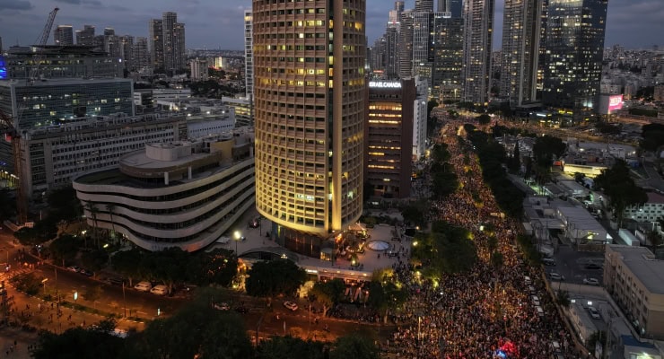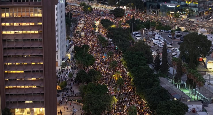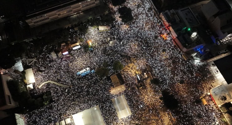 İsrail’de hükümetin Gazze kentini işgal kararından vazgeçmesi ve esir takası anlaşmasını imzalaması talebiyle düzenlenen protestolara 220 bin kişi katıldı.