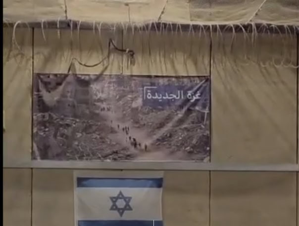 Aktivistlerinin tutulacağı bölümün avlusuna da Gazze’deki yıkımı gösteren bir tablo asıldı. Tabloda Arapça ‘Yeni Gazze’ yazıyor.