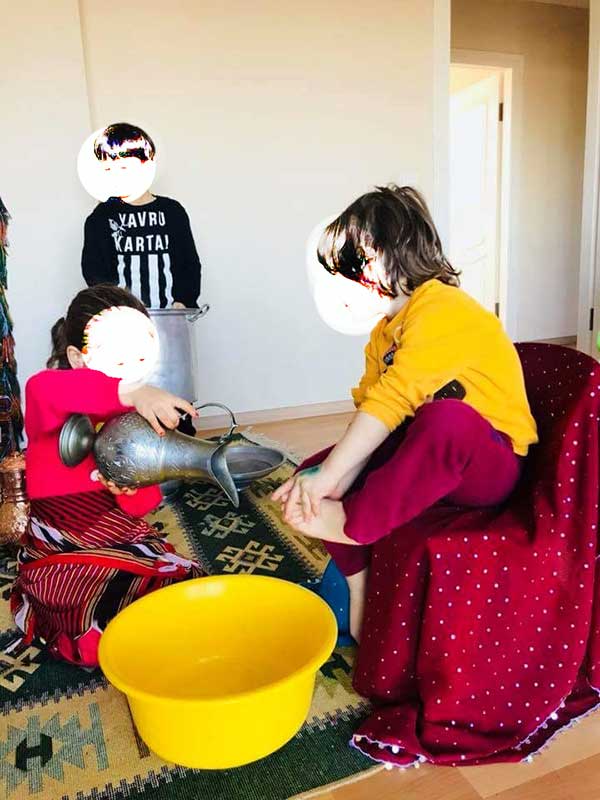 Evrensel’den Eylem Nazlıer’in haberine göre, üç-altı yaş arası çocukların oynadığı tiyatro gösterisinde yöresel kıyafetler giyen kız çocuklarına, erkek çocukların ayakları yıkatıldı.