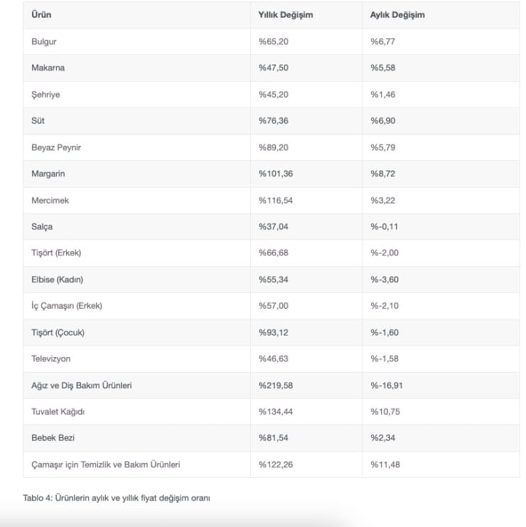 Diğer ürünlerdeki fiyat artışları şöyle: