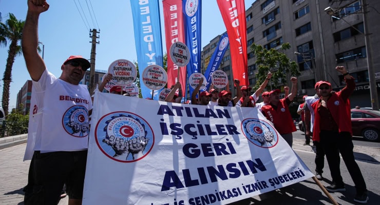 İzmir Büyükşehir Belediyesi’nde işten çıkarılan işçiler Türkiye Belediyeler ve Genel Hizmetler İşçileri Sendikası’yla (Belediye-İş) dün başlattıkları eyleme devam ediyor.