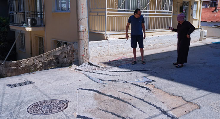 Bayraklı ilçesindeki Gümüşpala mahallesi 7083 sokaktaki bir binanın elektrik hattı için yol kazıldı. Ardından yol öylece bırakıldı.
