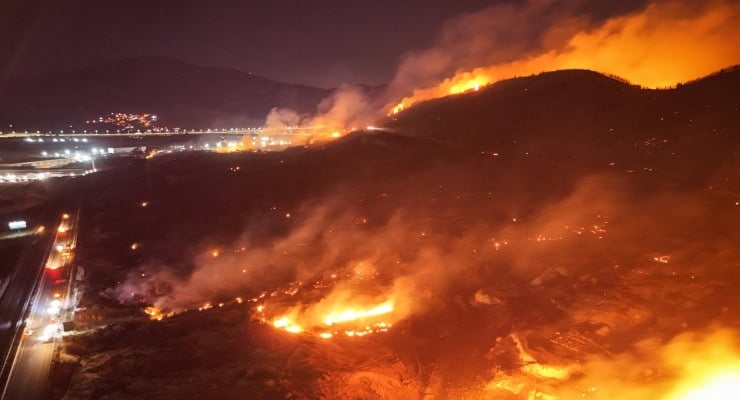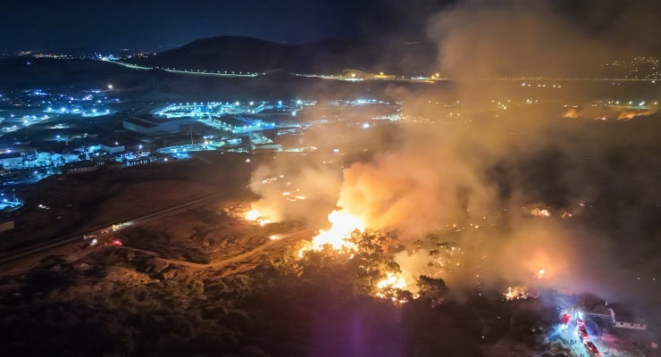 İzmir’in Aliağa ilçesinde çöplükte başlayan ve rüzgarla ormanlık alana sıçrayan yangın sürüyor.
