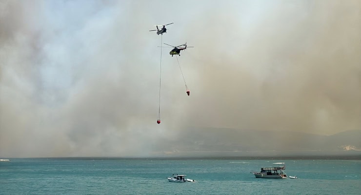 İhbar üzerine bölgeye İzmir Orman Bölge Müdürlüğü’ne ait iki uçak, altı helikopter, 14 arazöz, dört su ikmal aracı ve üç dozer sevk edildi.