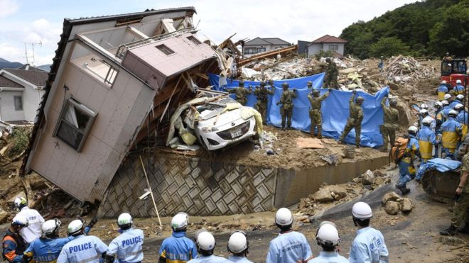Yetkililer, daha önce benzeri görülmemiş çapta bir yağışa maruz kaldıklarını söyledi. Geçen perşembe gününden bu yana Japonya’nın batısı, temmuz ayı ortalamasının üç katı yağış aldı.