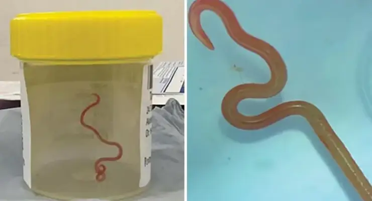 Ameliyat esnasında doktorlar, kadının beyninden 8 santimetre uzunluğunda ve 1 milimetre genişliğinde canlı solucan çıkardı.