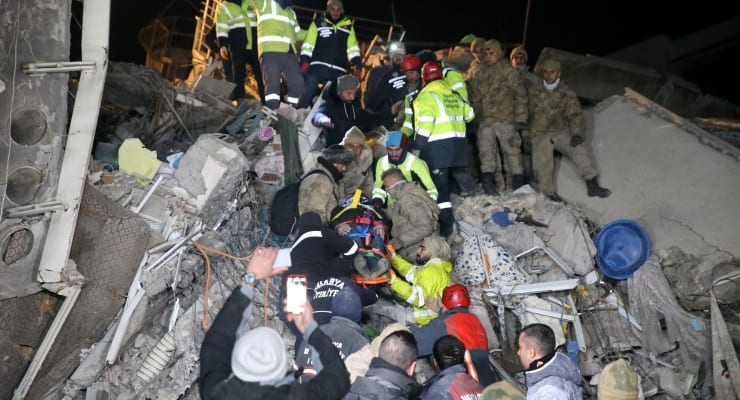 10 ili etkileyen depremlerin ardından Kahramanmaraş’ta yıkılan binaların enkazında arama kurtarma çalışmaları sürüyor.