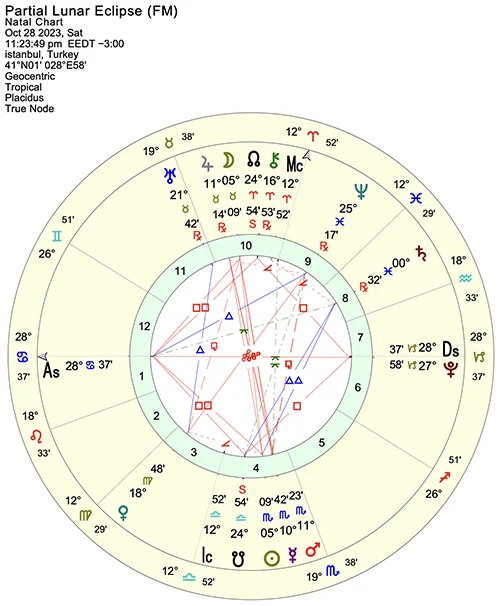 28 Ekim 2023 Cumartesi gecesi Türkiye saatiyle gece 23.14’te başlayacak ve bir saatten biraz daha uzun sürecek ay tutulması (23.23’te dolunay keskinleşiyor), etkisi artırılmış dolunay kalitesiyle bize işte tam da bunu hatırlatıyor. Artık temalarımız ben-biz ilişkiselliğini gündemimize getirse de bu son ‘güvenlik’ ve ‘kalıcılık’ odaklı tutulma son on sekiz aylık maddi-manevi güvenlik-kriz meselelerini kapatıyor.