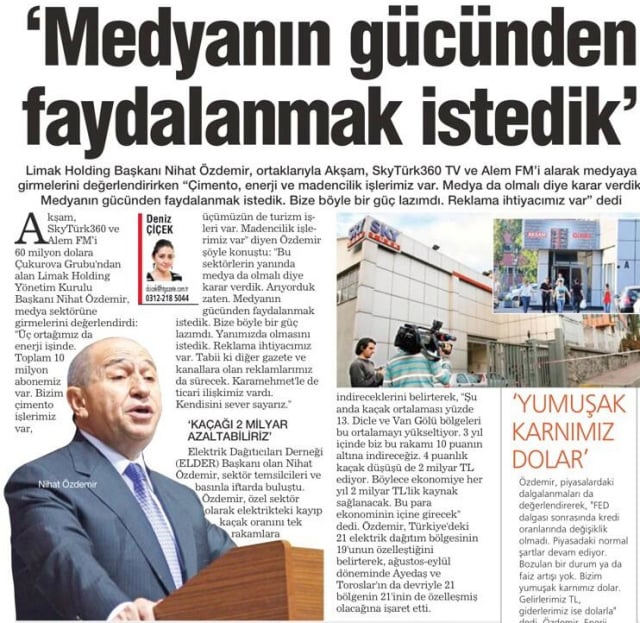 Bakın aralarından biri, Nihat Özdemir, nasıl açıklamıştı gazete televizyon satın almasını: “Medyanın gücünden yararlanmak istiyoruz.”
