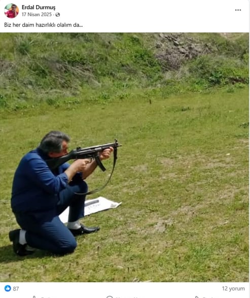 “Balıkesir ilinin Kepsut ilçesinde 2012’den beri ilçe milli eğitim müdürü olarak görev yapan Erdal Durmuş sosyal medya hesabında şu göstermiş olduğum fotoğrafı paylaşmıştır. Makineli tüfekle atış yaparken sosyal medya hesabında gurur duyarcasına şu fotoğrafı paylaşıyor, bu bir ilçe millî eğitim müdürü.
