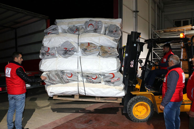 Irak’ın Halepçe kentinde meydana gelen 7.3 büyüklüğündeki depremin birkaç saat sonrasında Türk Kızılayı’nın üç TIR’dan oluşan yardım malzemesi Elazığ’dan Irak’a gönderildi.