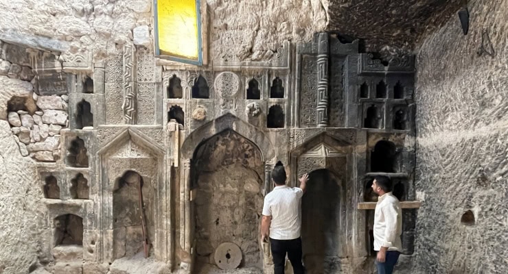 Bir vatandaşın odunluk olarak kullandığı kayadan oyma mekanı boşaltarak temizlik çalışması yapan ekip, altı asırlık taş işçiliği mihrabın da bulunduğu ibadethaneyi ortaya çıkardı.