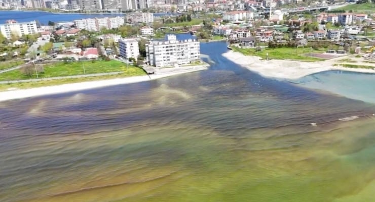 Küçükçekmece Gölü’yle Marmara Denizi’ni birbirine bağlayan ve balıkçı teknelerine ait barınağın da bulunduğu derenin suyu kahverengiye döndü.