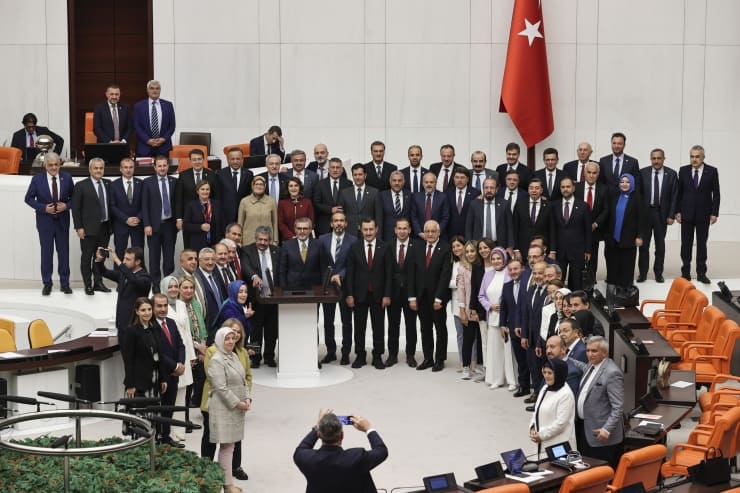 Yasayı geçiren AKP’li ve MHP’li vekiller görüşmeler sonrası hatıra fotoğrafı çekti.